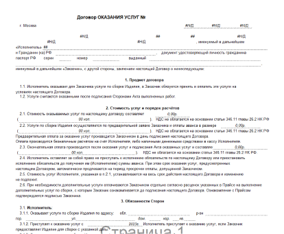 Договор оказания услуг по сборке мебельного изделия для физических и юридических лиц